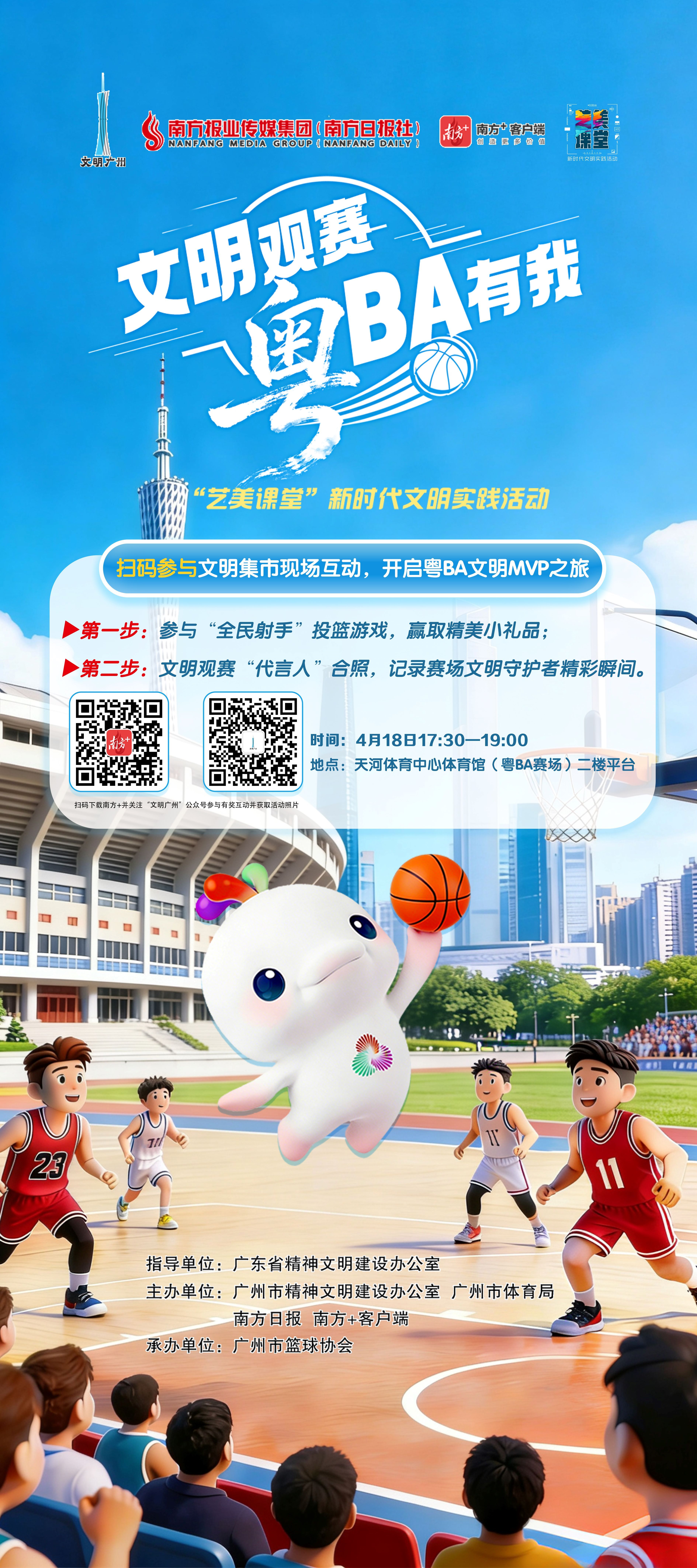 篮球点燃激情,文明成就精彩,一起争当粤BA赛场的文明MVP!本次活动由广东省精神文明建设办公室指导,广州市精神文明建设办公室、广州市体育局、南方日报、南方+客户端联合主办,广州市篮球协会承办。